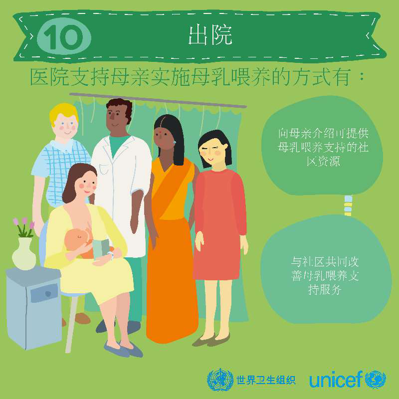 2018年4月11日,世界卫生组织与联合国儿童基金会在日内瓦联合发布了更新版《促进母乳喂养成功10项措施(2018)》,此次新修订的10项指导措施是根据2017年11月题为《在提供孕产妇和新生儿服务的机构保护、促进和支持母乳喂养》的世界卫生组织指南制定,并附在世界卫生组织与联合国儿童基金会制定的《2018爱婴医院倡议实施指南》中,旨在增进为孕产妇和新生儿提供服务的医疗机构更多母乳喂养支持。
