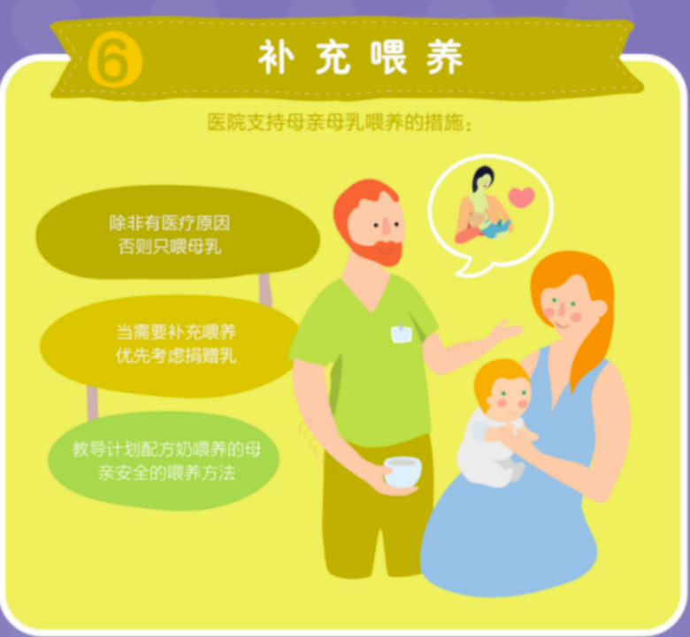 5.支持母亲尽早开始母乳喂养,维持母乳喂养以及应对母乳喂养常见的困难。